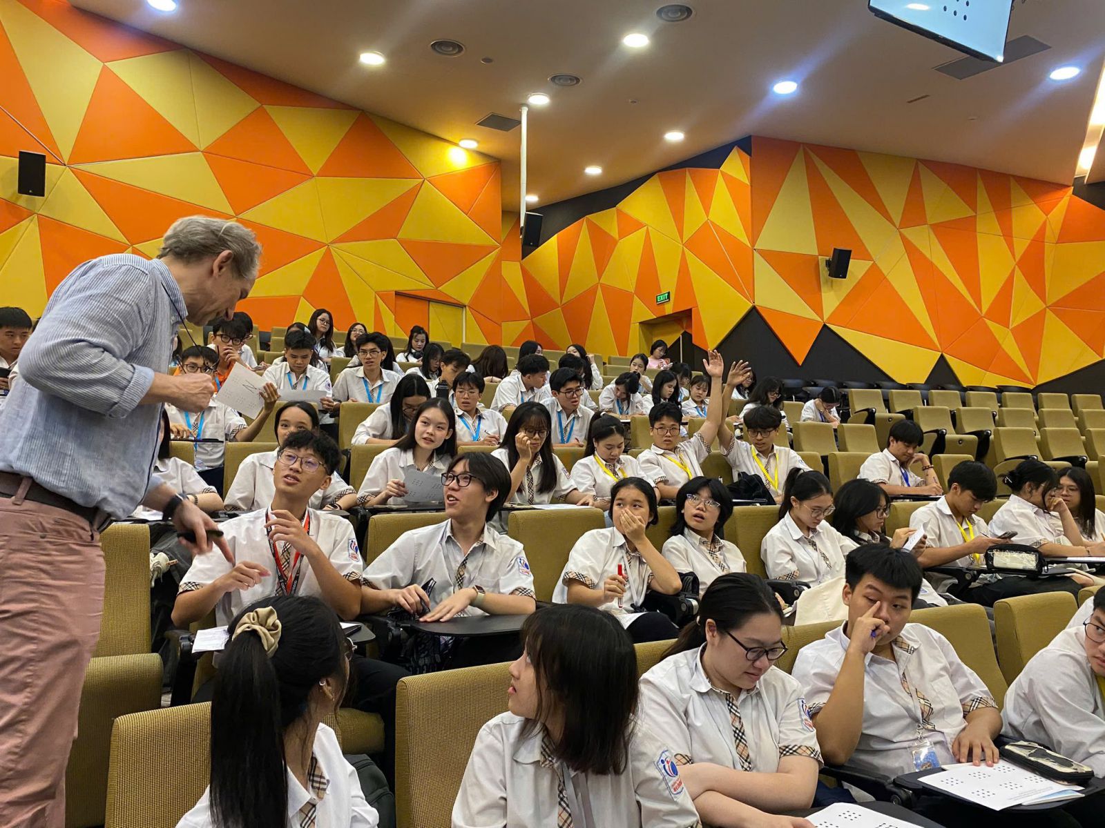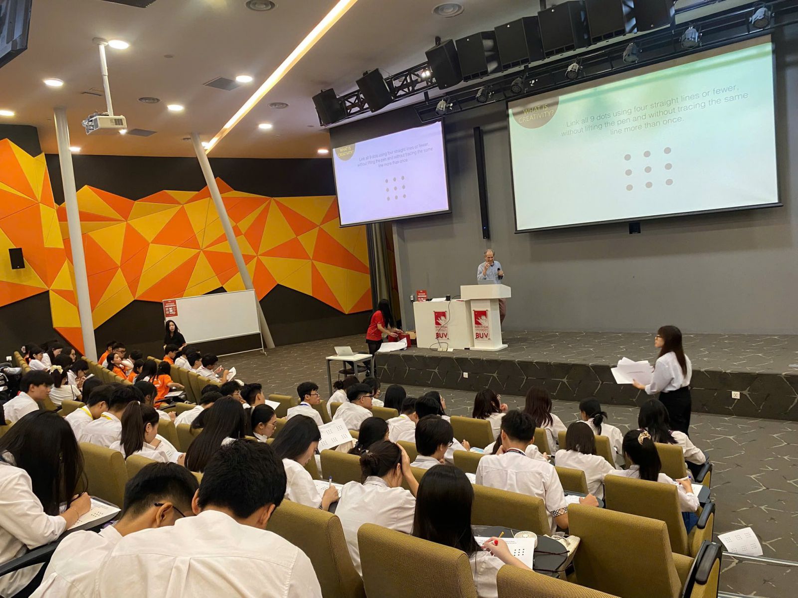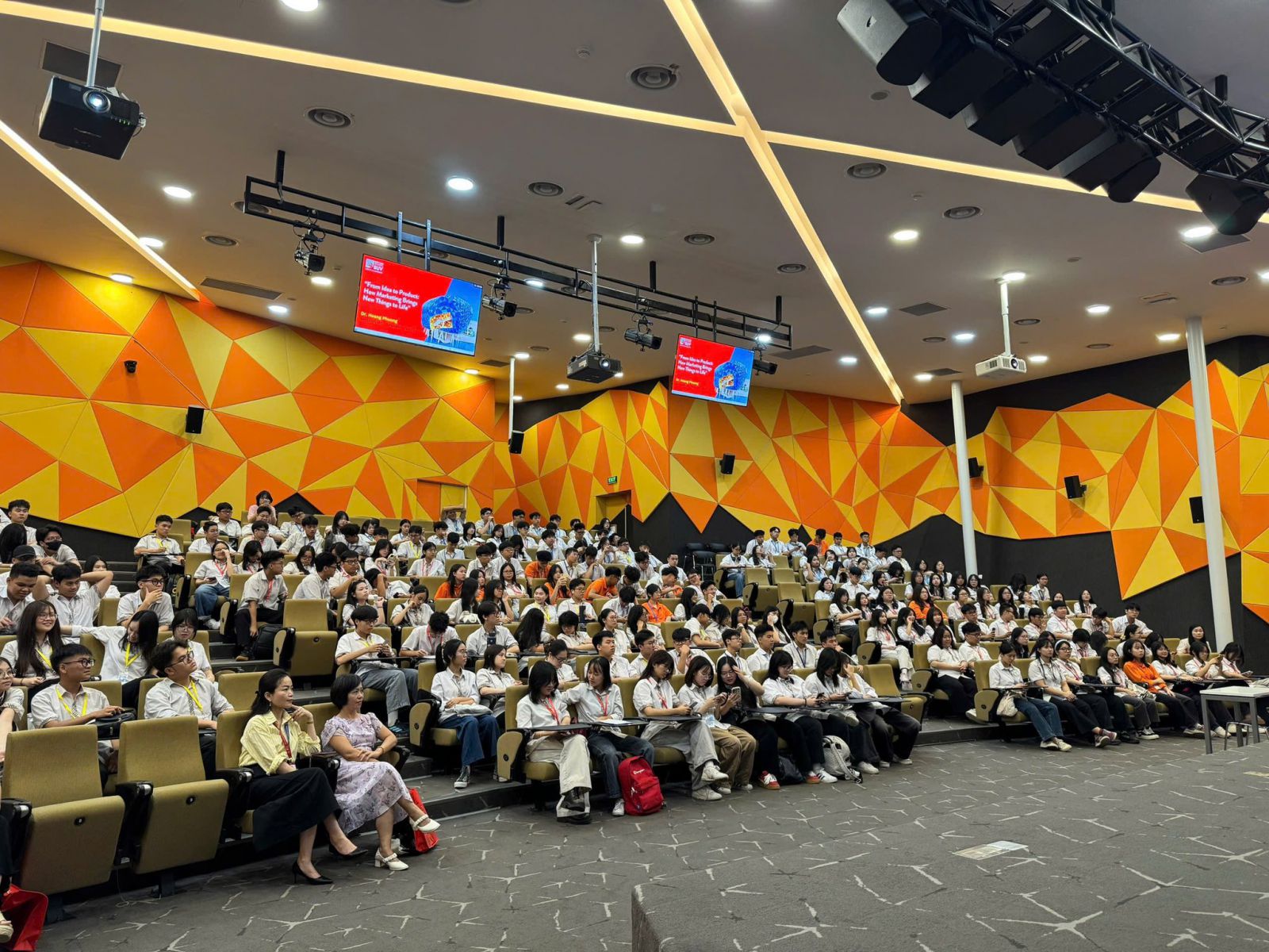 Buổi sáng, đoàn tham quan Đại học BUV (British University Vietnam) – nơi các em được tìm hiểu về môi trường học tập quốc tế hiện đại, năng động cùng nhiều cơ hội phát triển bản thân trong tương lai. Không chỉ lắng nghe chia sẻ từ thầy cô, các bạn học sinh còn được tham gia các hoạt động chuyên ngành: lớp học thử Marketing, lớp Truyền thông với giảng viên quốc tế, và hoạt động Workshop cùng sinh viên chuyên ngành của BUV. Những thông tin cụ thể và các hoạt động đã giúp học sinh có thêm nhiều kiến thức bổ ích chuẩn bị cho hành trình đại học phía trước.