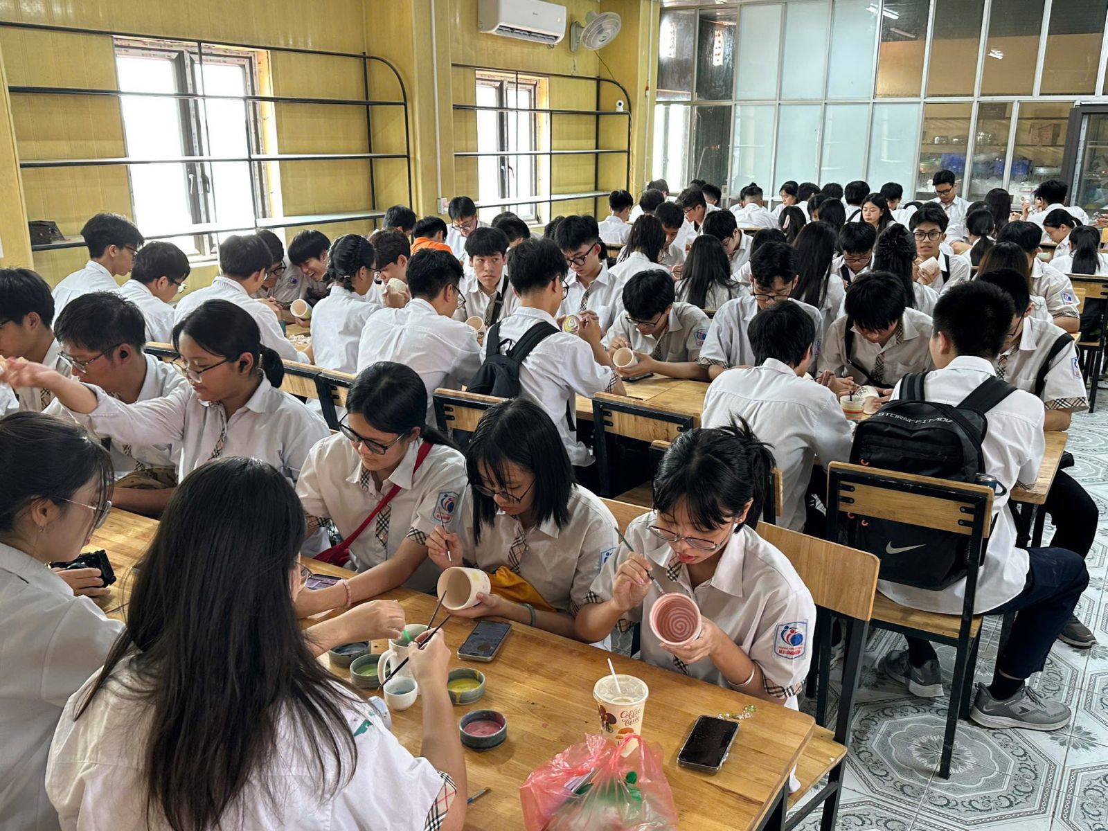 Buổi chiều, hành trình tiếp tục tại Làng gốm Bát Tràng – không gian văn hóa truyền thống lâu đời của dân tộc. Tại đây, các em được hướng dẫn nặn gốm và trải nghiệm vẽ trên đồ gốm, tự tay sáng tạo nên những sản phẩm mang dấu ấn riêng của mình, đồng thời thêm trân trọng những giá trị văn hóa Việt Nam.