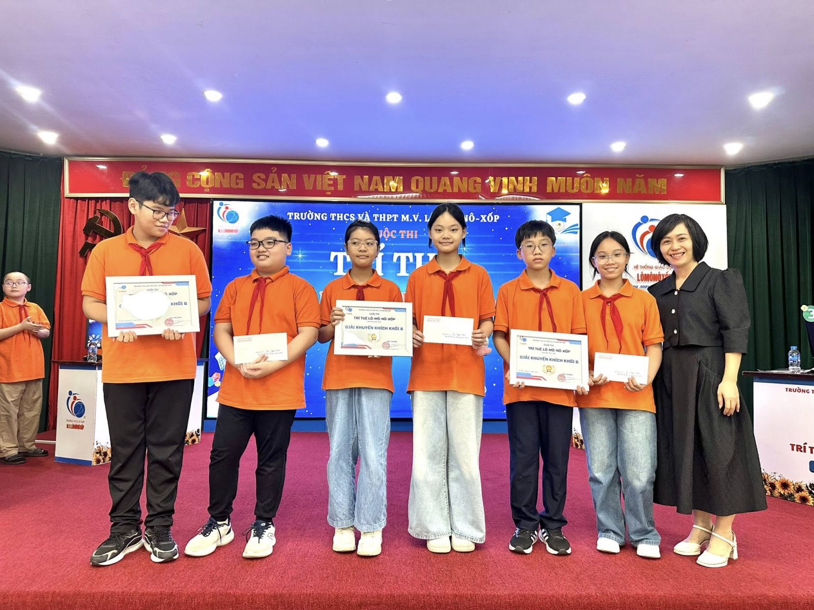 The LMNX Intellectual Contest at M.V. Lô-mô-nô-xốp School has officially concluded after a remarkable journey through Grades 11, 10, 8, 7, and finally today with Grade 6.