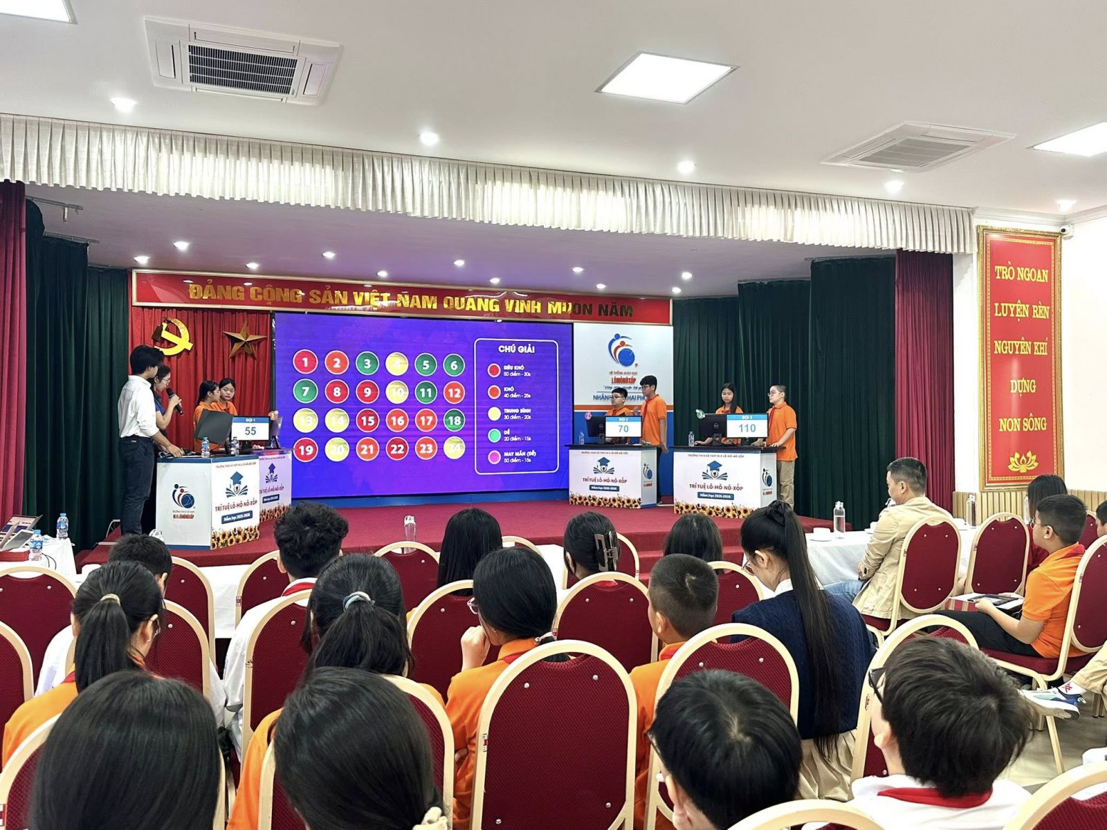 Không chỉ thi tốt, các đội khối 6 còn mang đến vô vàn khoảnh khắc đáng yêu: những cái nhíu mày đầy tập trung, những câu trả lời bất ngờ khiến khán giả bật cười, và những phút giây bứt phá thật thăng hoa. Sự hồn nhiên nhưng lanh lợi ấy đã tạo nên một buổi thi rực rỡ sắc màu, khiến ai có mặt cũng đều cảm thấy vui lây.