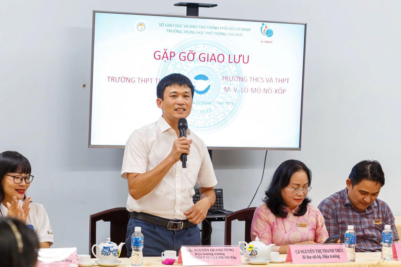 Trong chuyến công tác tại Thành phố Hồ Chí Minh để tham dự Lễ vinh danh các chuyên gia giáo dục sáng tạo của Microsoft (MIEE), đoàn công tác của Trường THCS và THPT M.V. Lô-mô-nô-xốp đã có dịp đến tham quan và giao lưu học hỏi với Trường THPT Thủ Đức – một trong những trường có chất lượng giáo dục hàng đầu của Thành phố Hồ Chí Minh.