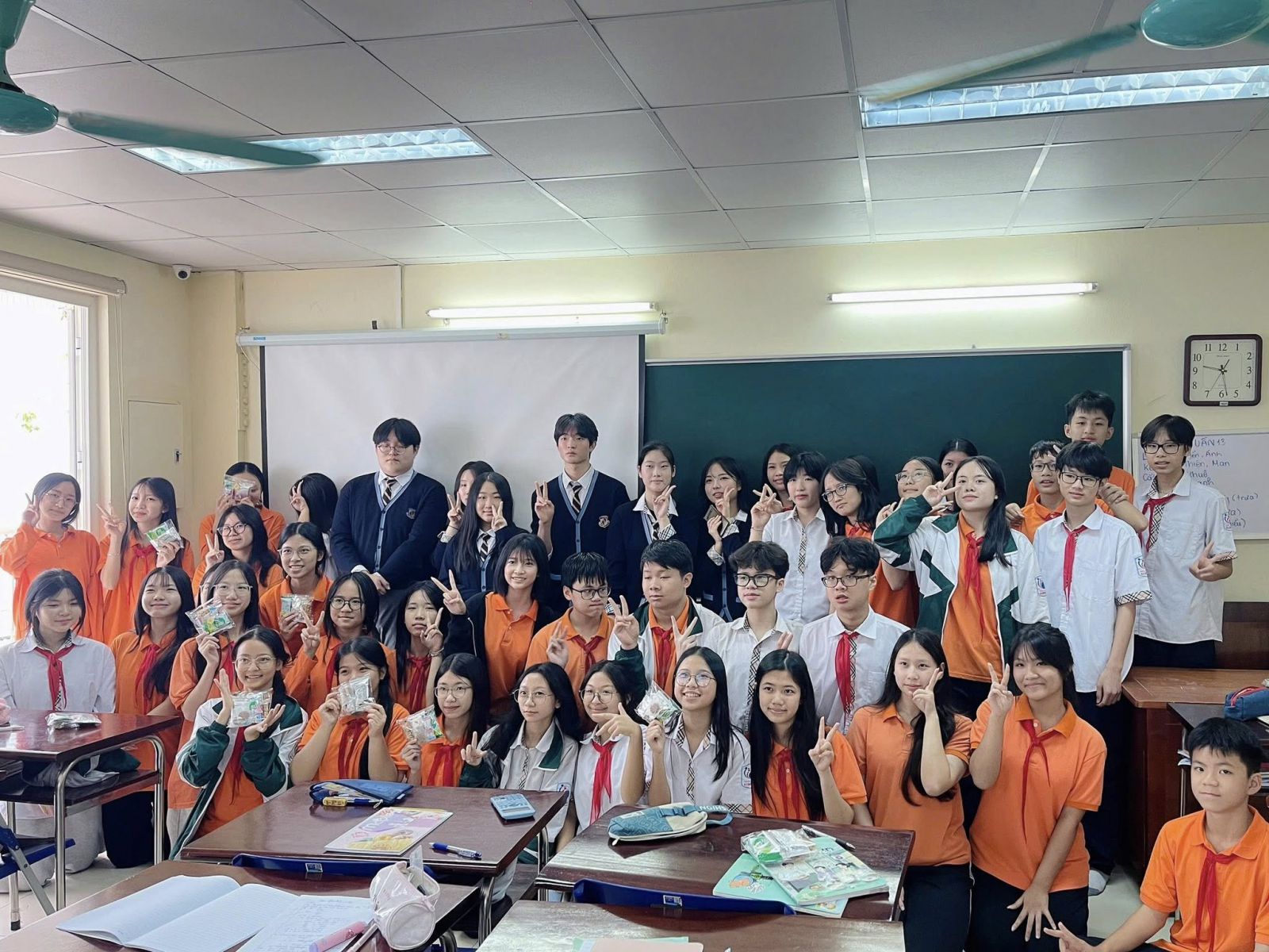 The exchange took place in a friendly and open atmosphere. Students from both schools shared moments of greeting, self-introduction, and discussed familiar topics such as culture, cuisine, and hobbies in Korean. They experienced culinary culture, with the highlight being the Kimbap-making activity. Under the enthusiastic guidance of their Korean peers, the school's Korean language students successfully made delicious traditional rice rolls by themselves.
