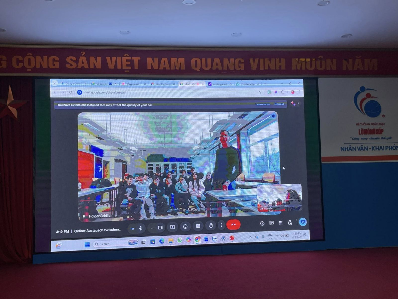 Đặc biệt hơn cả, thông qua buổi làm quen này, các bạn học sinh đều bày tỏ sự háo hức và mong chờ ngày được gặp gỡ trực tiếp các bạn trường Schule an der Sieg trong chuyến thăm dự kiến tới Việt Nam vào cuối năm nay. Đây chắc chắn sẽ là một dấu mốc đáng nhớ, là cơ hội quý báu để học sinh hai trường tăng cường sự gắn kết và hiểu biết lẫn nhau.