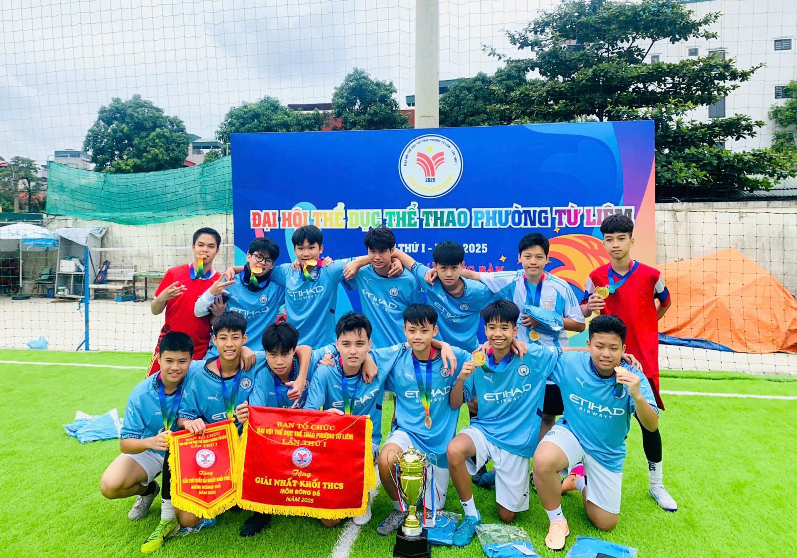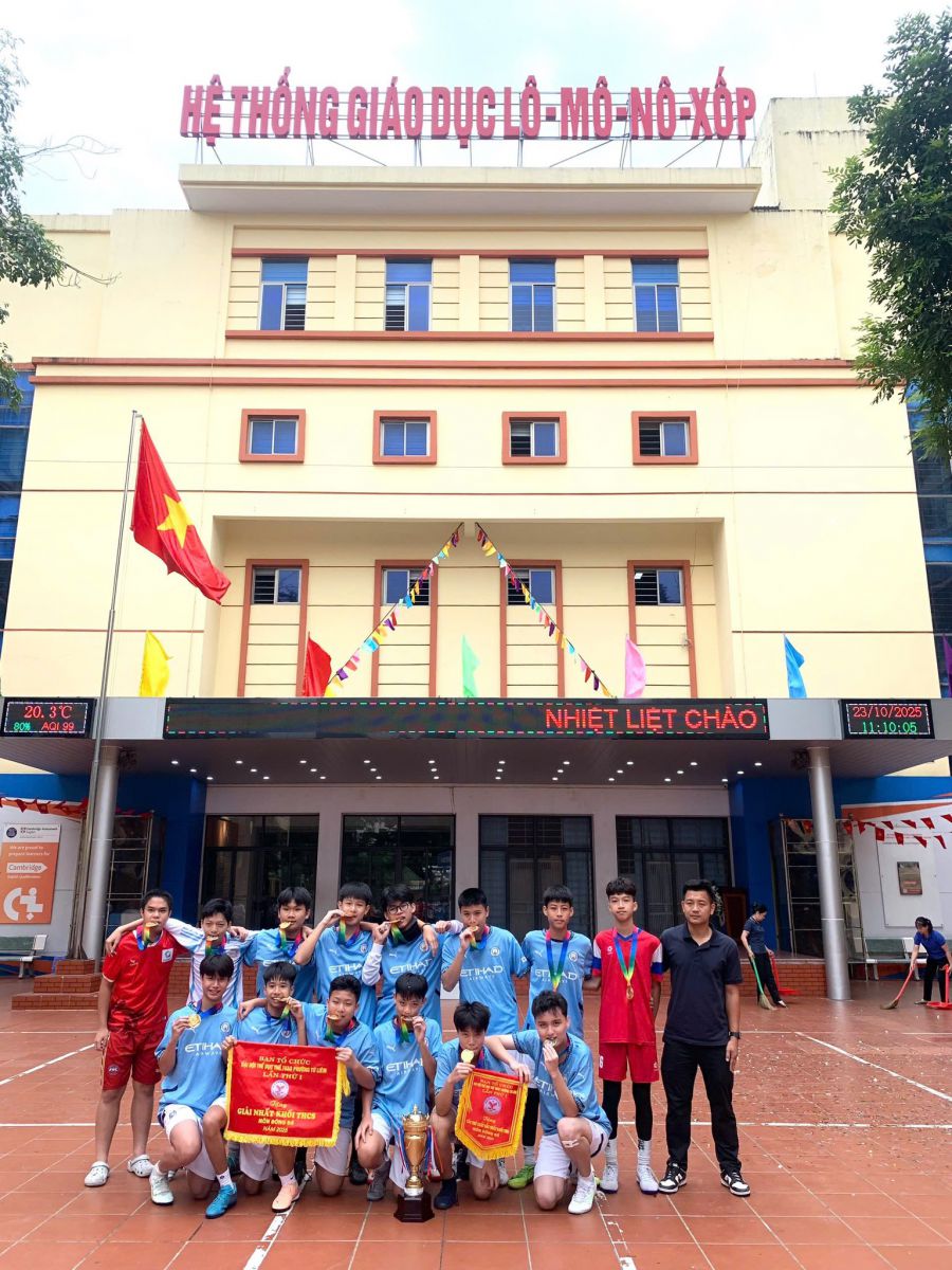 Đội bóng đá nam khối THCS Trường THCS và THPT Lô-mô-nô-xốp đã xuất sắc giành ngôi VÔ ĐỊCH tại Giải bóng đá Phường Từ Liêm lần thứ I – năm học 2025–2026, mang về niềm tự hào lớn lao cho Nhà trường!