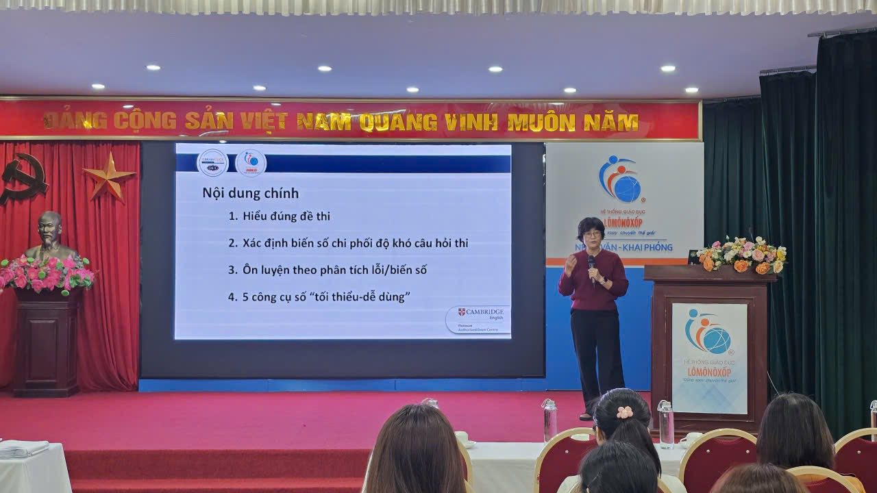 Trường THCS và THPT M.V. Lô-mô-nô-xốp rất vinh dự được tổ chức buổi sinh hoạt chuyên môn cấp Cụm môn Tiếng Anh năm học 2025-2026 với chủ đề “PHÂN TÍCH ĐỀ THI THPT TIẾNG ANH 2025 VÀ NÂNG CAO HIỆU QUẢ ÔN TẬP“ do chuyên gia, Thạc sĩ Phạm Việt Hà, Giám đốc đào tạo viện Anh ngữ Oxford OEA Việt Nam, Trung tâm Khảo thí Ủy quyền Bạch Kim Cambridge English trình bày trao đổi.