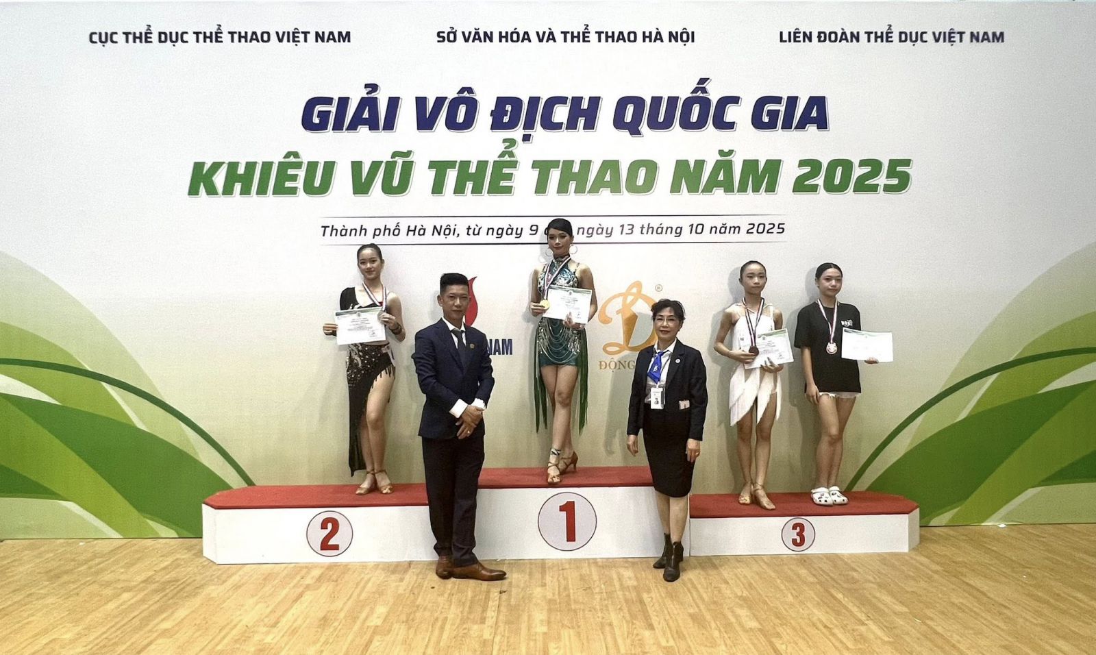 Congratulations to athlete Bùi Minh Châu, student of class 9A1, M.V. Lomonosov Secondary & High School, for winning 3 Silver Medals and 1 Bronze Medal at the 3rd National Sports Dance Championship 2025, officially recognized by the Vietnam Gymnastics Federation.