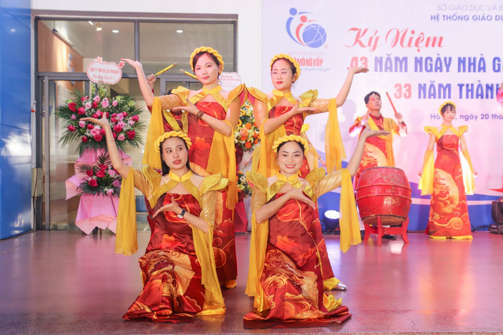 Chương trình mở đầu rực rỡ với những tiết mục văn nghệ do chính các thầy cô biểu diễn. Giai điệu trong trẻo, điệu múa mềm mại đã làm bừng sáng hội trường, mang đến một khởi đầu đầy cảm xúc và tươi vui.