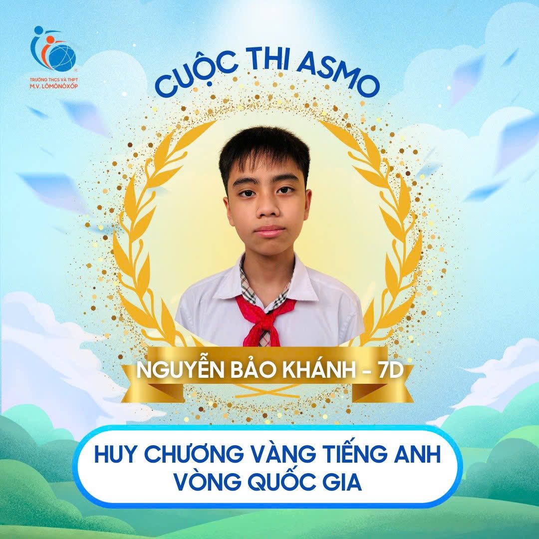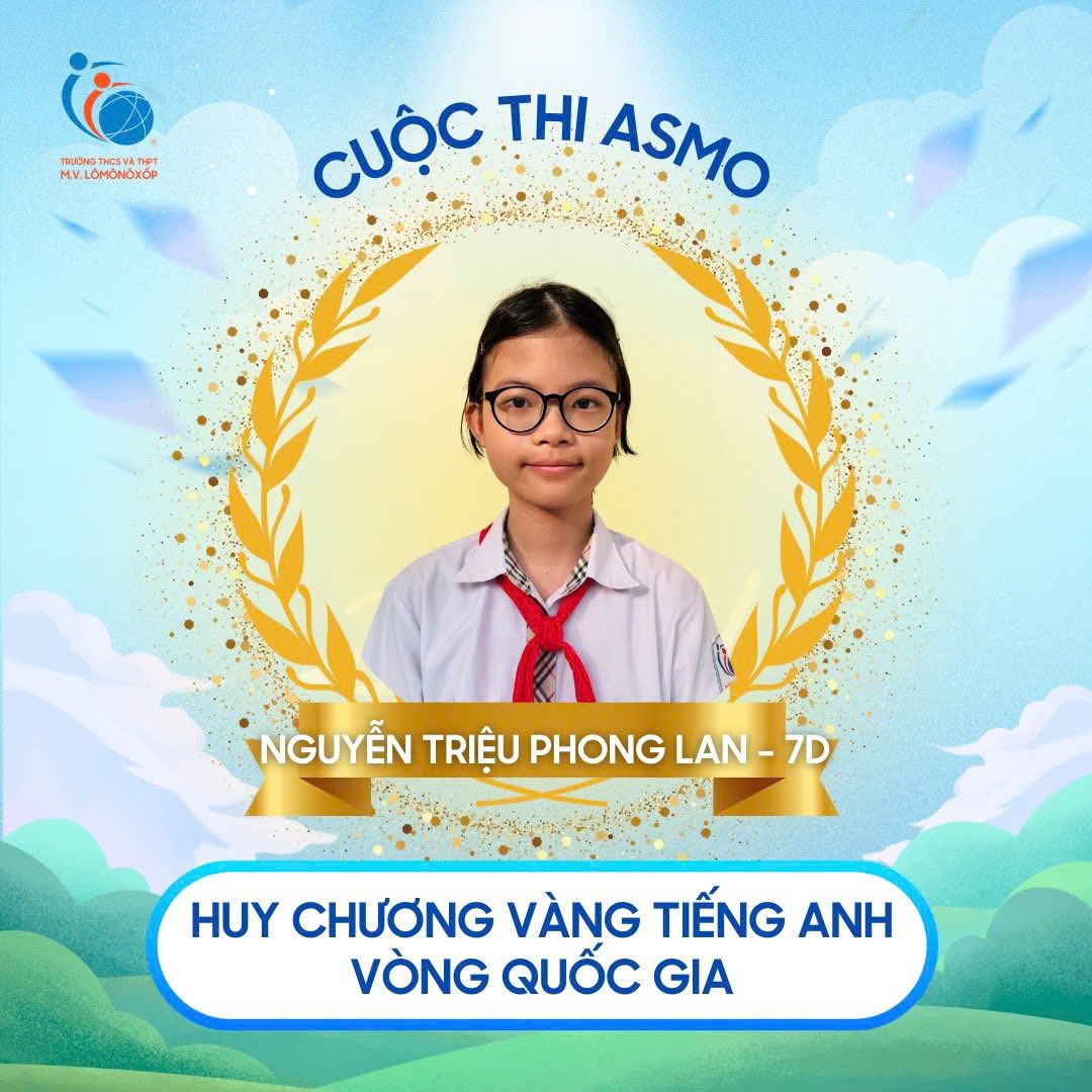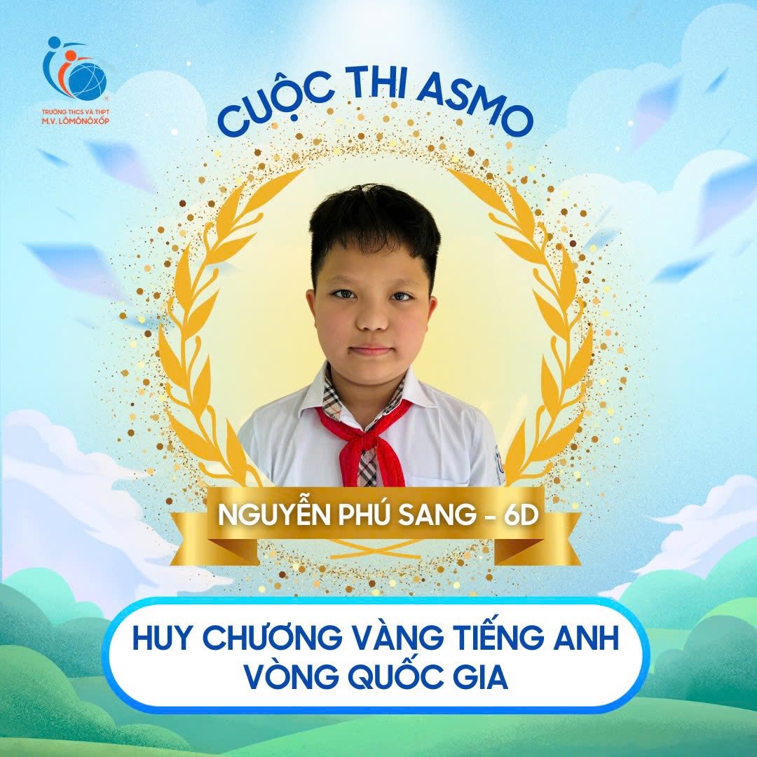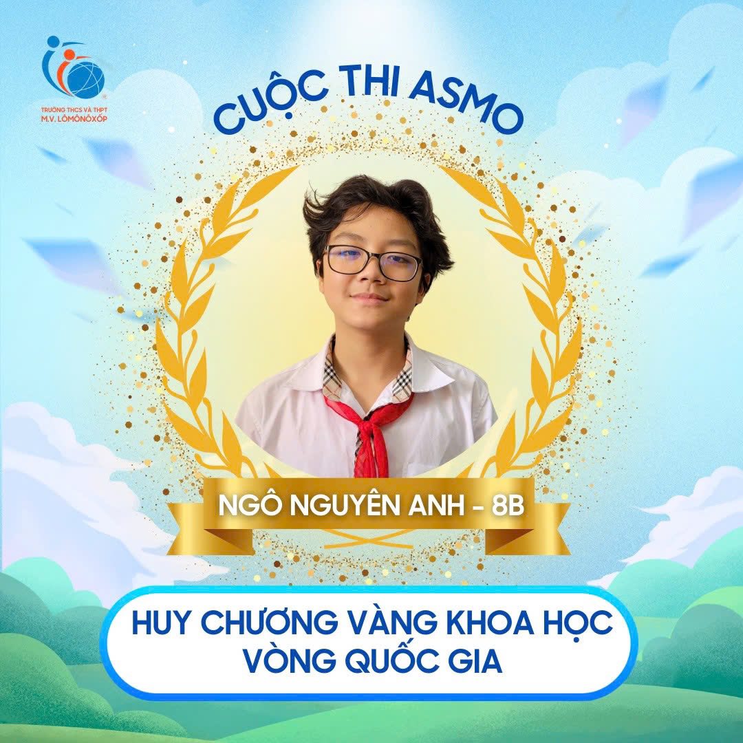 Trong kỳ thi ASMO (Asian Science & Maths Olympiad) vòng Quốc gia năm nay, các bạn học sinh của trường THCS và THPT M.V. Lô-mô-nô-xốp đã tiếp tục khẳng định bản lĩnh học thuật, niềm đam mê khám phá và tinh thần vượt khó. Thành tích đạt được vô cùng ấn tượng ở các môn Tiếng Anh – Khoa học – Toán học; cụ thể: